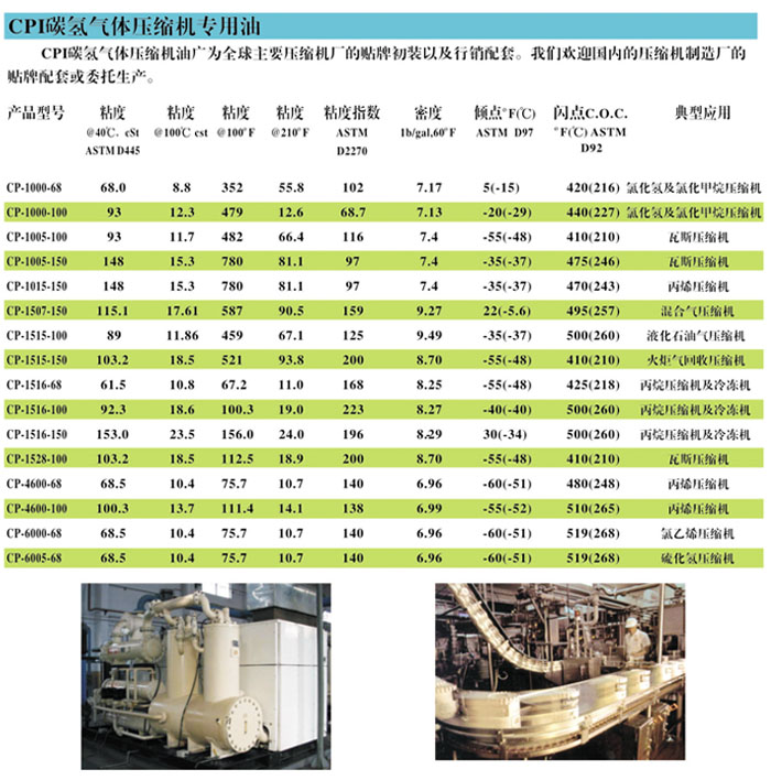 CP-4600/CPI-4600 系列冷凍機油是專業(yè)調(diào)制聚α烯烴(PAO)合成冷凍油,此產(chǎn)品不含臘,它可改善在高溫及低溫下的潤滑情況,減低揮發(fā)性,良好的化學(xué)惰性及水解穩(wěn)定性。并且與礦物油有良好的相溶性,而且可以走到更低的溫度,例如:-60℃至-70℃。并且CP-4600系列合成冷凍油是一種長壽命的壓縮機油,尤其是在油浸式螺桿壓縮機上。